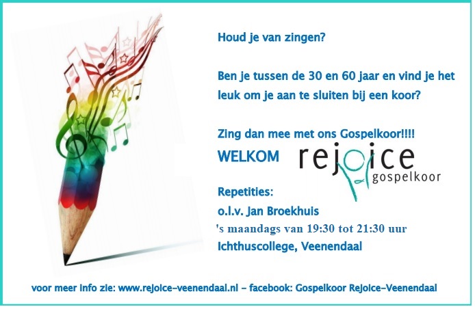 Rejoice uit Veenendaal bestaat uit een groep enthousiaste mensen (ca. 70) met vooral één gemeenschappelijke hobby: zingen. Al vanaf de oprichting willen we met zang en muziek de boodschap van Gods liefde uitdragen.